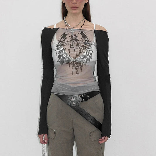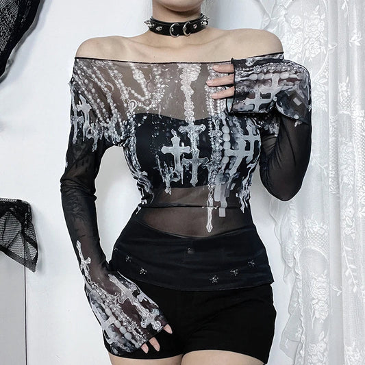 OFERTA 50%Gótico Manga Larga Top Gótico