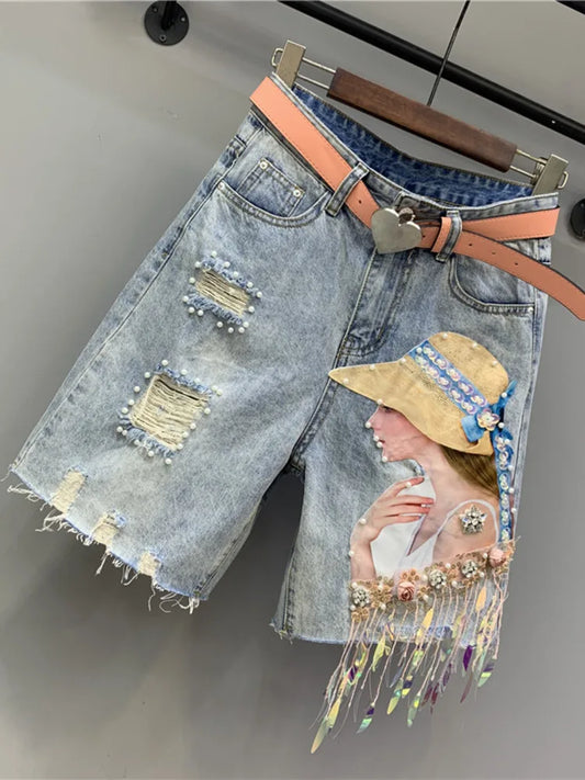 OFERTA 43%Pantalones Cortos Góticos Rotos