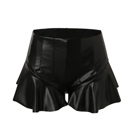 OFERTA 28%Pantalones Cortos Góticos Ruffle Cuero