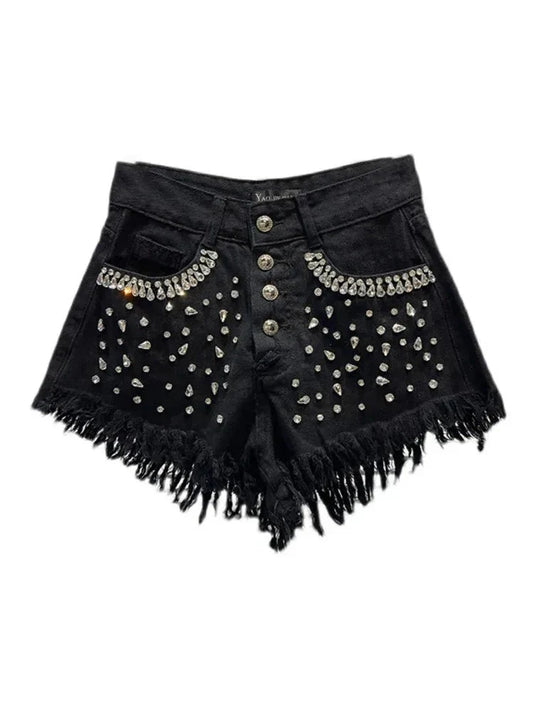 OFERTA 42%Shorts Góticos Sparkly Rhinestone Denim