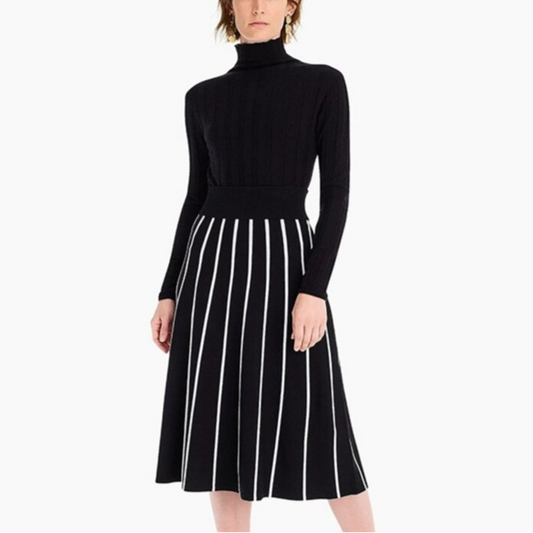 Vestido Gótico Stripe Print Turtleneck Knit Midi