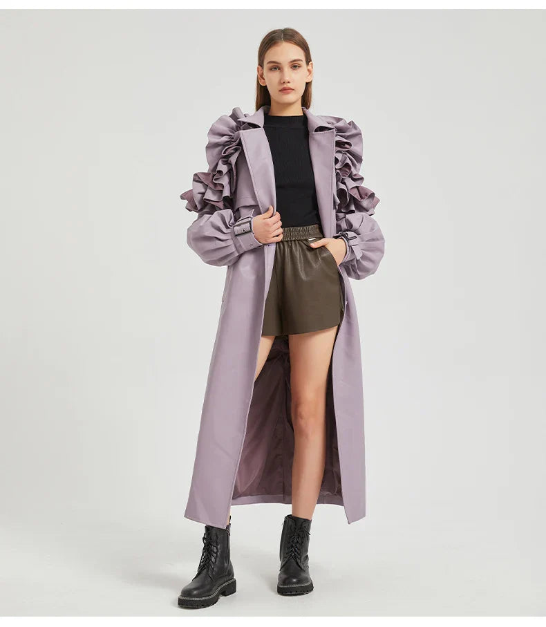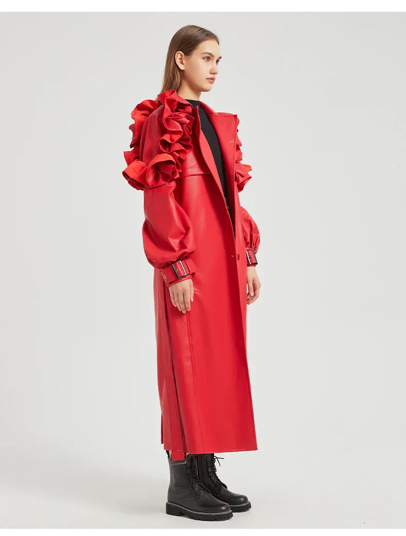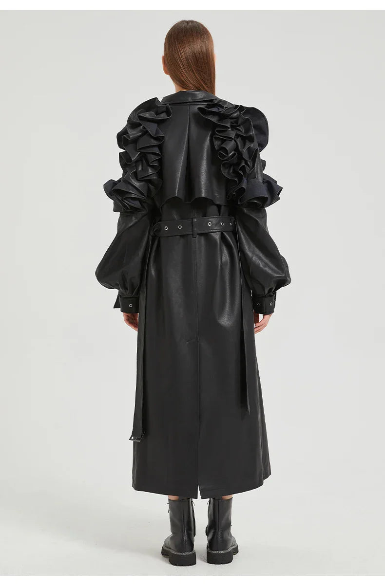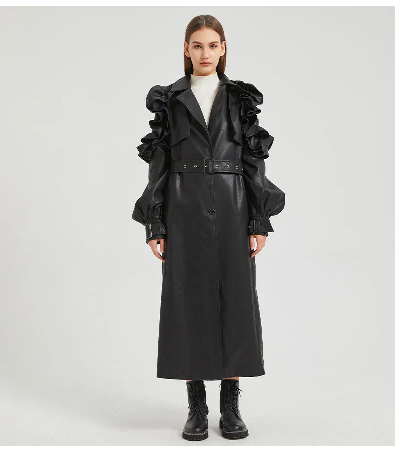 The best outerwear investment to see you through the seasons. Our Antonio Long Ruffled Coat is crafted from premium vegan Cuero. This is a jacket with timeless appeal and style credibility. A must-buy.