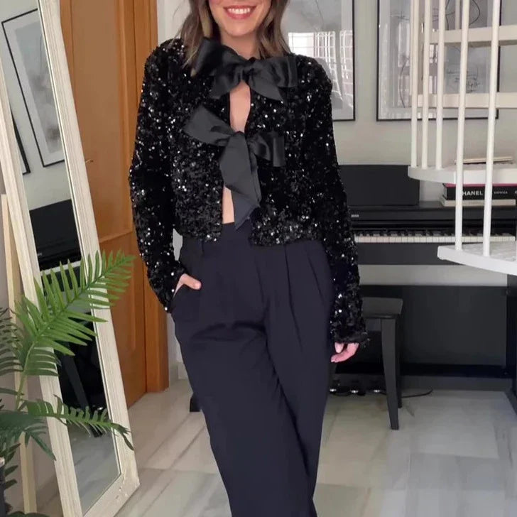 Impón tu presencia. El Chaqueta Gótica Tie-front Sequined fusiona actitud, silueta y estética gótica para elevar tu look con intención. Diseñado para quienes lideran en silencio y se mueven con poder.