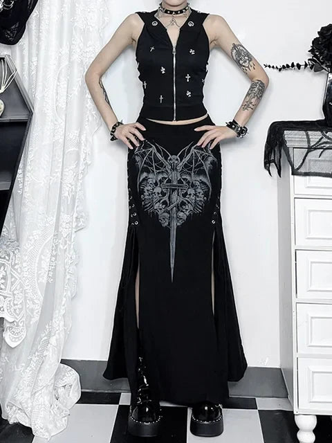 Diseñada para quienes visten la oscuridad con intención. Falda Gótica Artemisa de Encaje aporta presencia, actitud y una estética gótica marcada para elevar tu look en el día o en la noche.