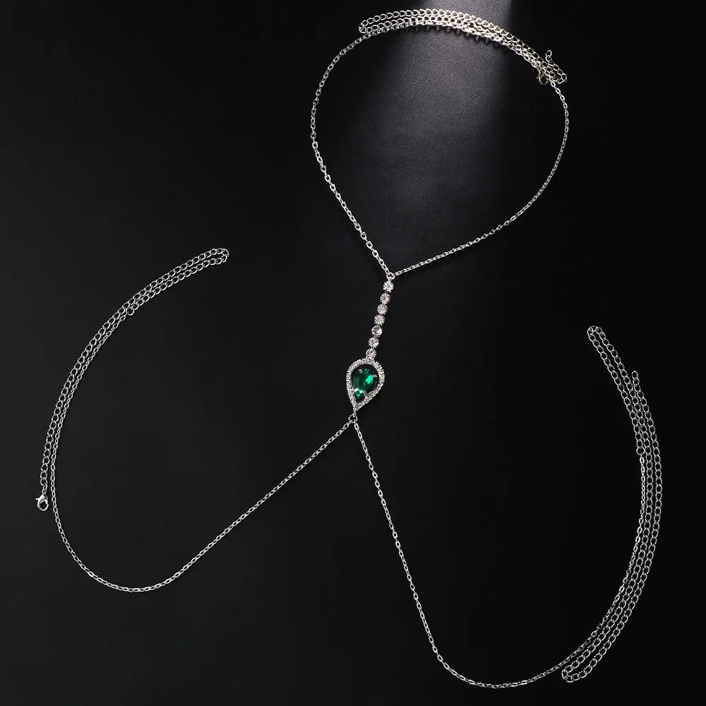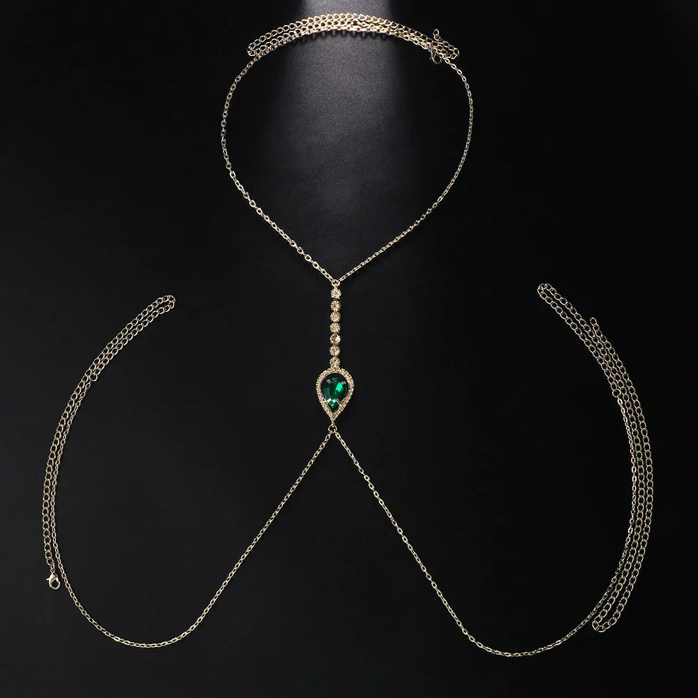 Elevate your elegance with the Green Crystal Chest Chain, a stunning piece that combines timeless sophistication with modern charm.