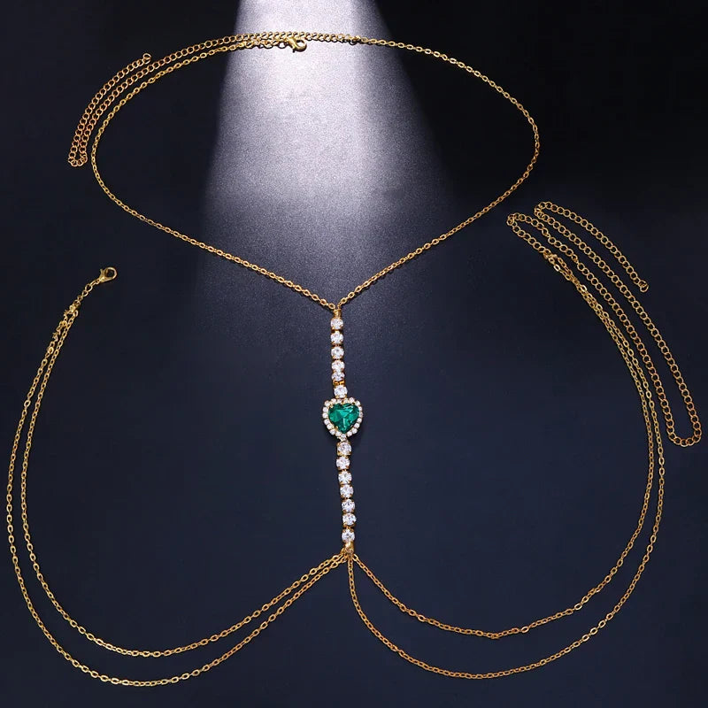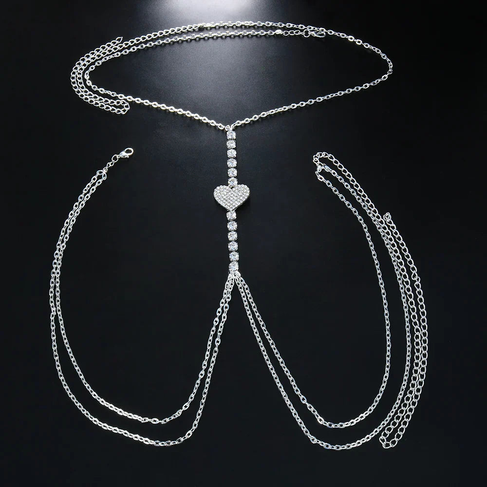 - Crafted from premium rhinestones, this chest chain offers both durability and a luxurious feel.