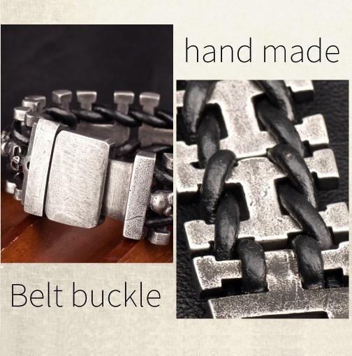 Fabricada en acero inoxidable de alta calidad y cuero resistente, esta pulsera presenta un elegante tono gris plateado que realza cada detalle del diseño. Es un accesorio versátil que completa tanto looks casuales como outfits más elaborados, aportando personalidad y presencia sin esfuerzo.